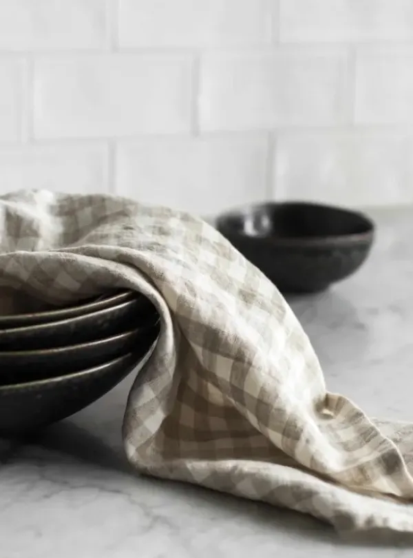 Tell Me Moren perinteinen pellavainen ruutukeittiöpyyhe luonnolliseen tyyliin! Materiaalina ranskalainen pesty pellava.