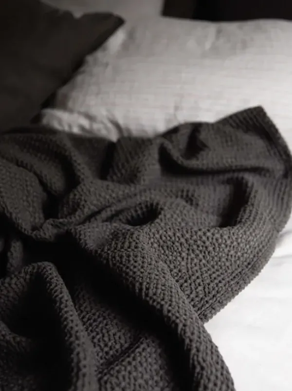 Tell Me Moren puuvillainen vohvelikankainen torkkupeitto. Värinä kaunis tummanruskea taupe. Peiton koko 140x200cm.