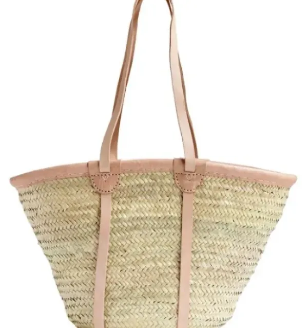 Tine K Homen supersuosittu korikassi pidemmillä nahkahihnoilla! Nahkahihnat menevät korin alta, joka tekee kassista tukevan. Nahkahihnat kiinnitetty kassiin ompeleilla.