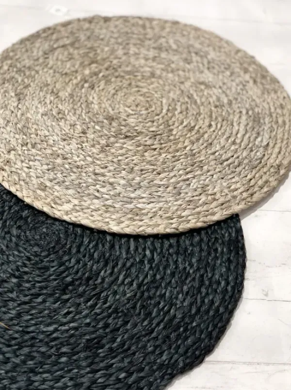 Tabletin halkaisija 40cm. Materiaali abacaklehteä, joka muistuttaa banaaninlehteä.