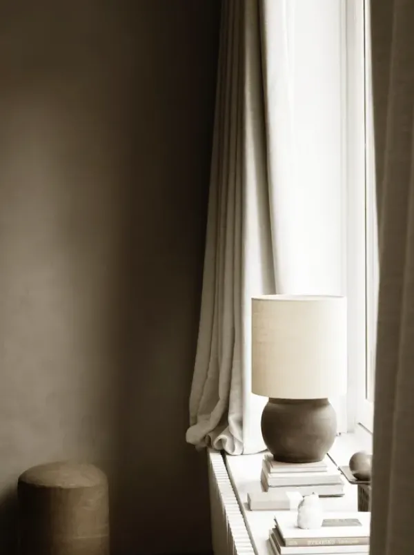 Tine K Homen upea keraaminen pöytävalaisin. Tähän valaisimeen sopii varjostimeksi Tine Kn 30x30cm lieriövarjostin.