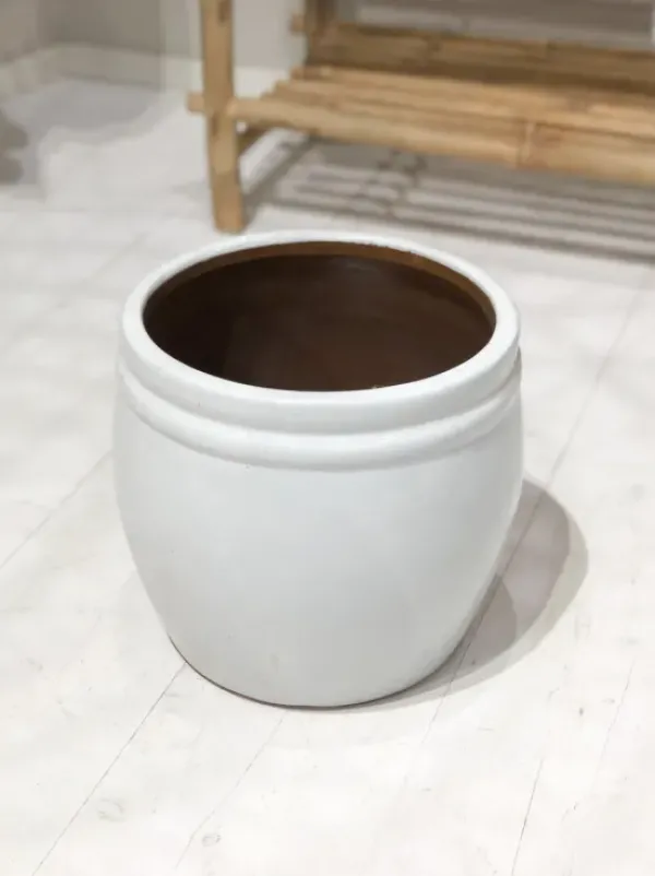 Tine K Homen ikivihreät ja iki-ihanat lasitetut ruukut pihalle, parvekkeelle, keittiöön… Useita kokoja ja kahta eri väriä. Murrettu valkoinen ja murrettu musta.